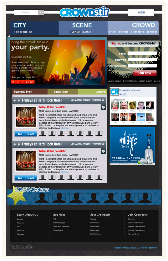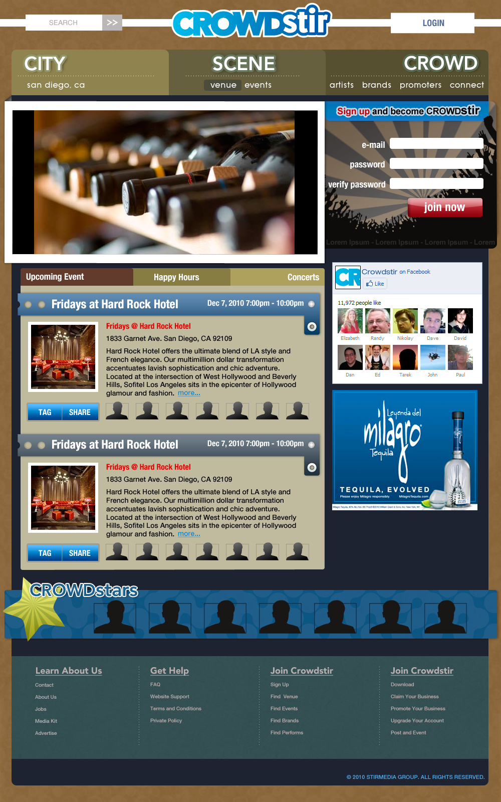 Crowdtir.com offers the public an easy way to stay connected with their favorite brands and informed about upcoming sponsored events and great happy hour deals.